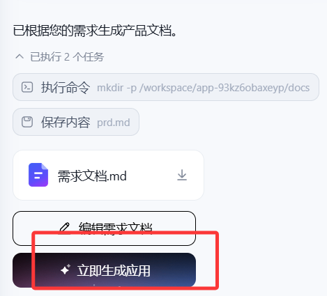 然后我看下,是我需要的游戏,点击立即生成应用就可以了,如果做出来的游戏,还有一些问题,我们可以在对话框提出修改的地方,再点击让AI优化