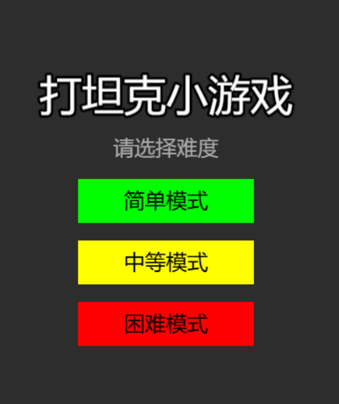 例如:简单模式(坦克移动慢、子弹速度慢)、困难模式(坦克移动快、子弹速度快)